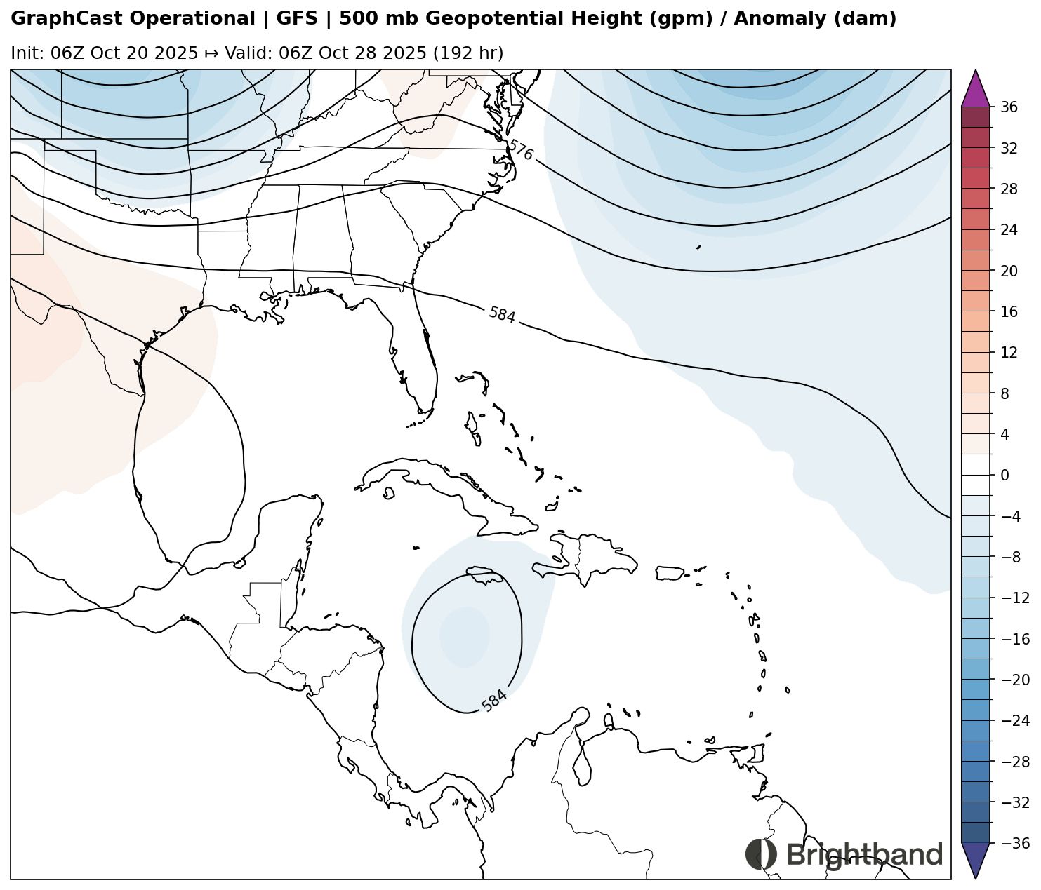 If this scenario does play out, we would likely see the potential for a very strong hurricane. The waters of the Caribbean are very warm, and models are forecasting the upper-level winds to be light and anticyclonic in the medium range, so there would be little shear over the storm further west (Figure 7).