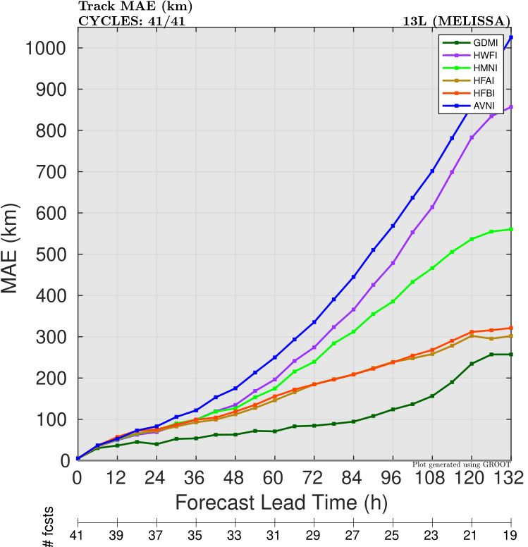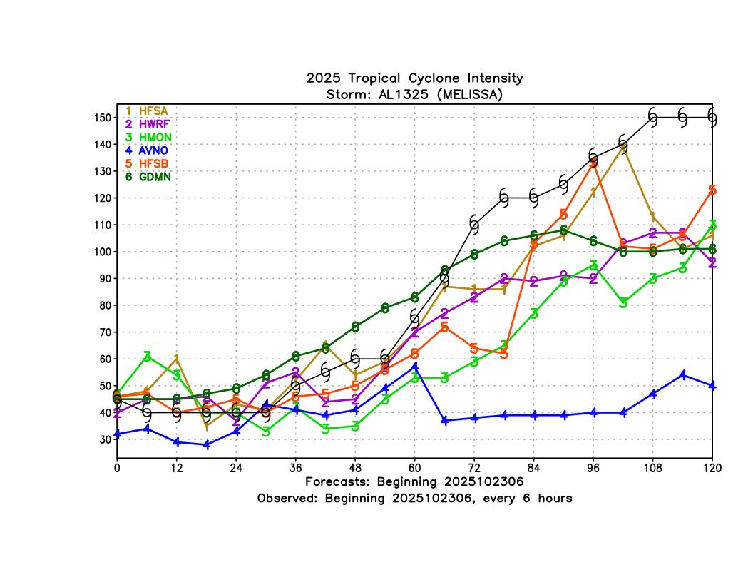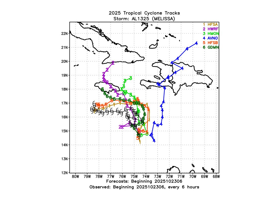 One of the most hotly-discussed AI models this hurricane season has been Google’s DeepMind/FNV3 ensemble. Google has worked with the National Hurricane Center and made their track files publicly available in real-time during this hurricane season, which has provided an excellent opportunity for evaluation in a variety of cases, to understand the strengths and weaknesses of the model. One case that will certainly draw a lot of attention is Hurricane Melissa, which severely impacted Jamaica as well as Cuba, Haiti, and the Bahamas in late October. It was tied for the strongest hurricane landfall ever in the Atlantic at 892 hPa. Based on its performance in other Atlantic storms this year, NHC actually leaned on the DeepMind forecasts quite a bit in their forecasts for Melissa.